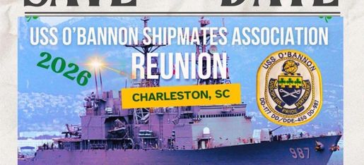 USS O’bannon Shipmate Association page, is a place of gathering for the crew members of the USS O‘Brannon. There were 3 different ships with this name. One in WW1, WW2 and the final that was retired of a few years ago. If you are a veteran, family member of the OBannon you are welcome. We are now a non profit tax deductible origination where you can donate and help us bring more to the fellow shipmates.